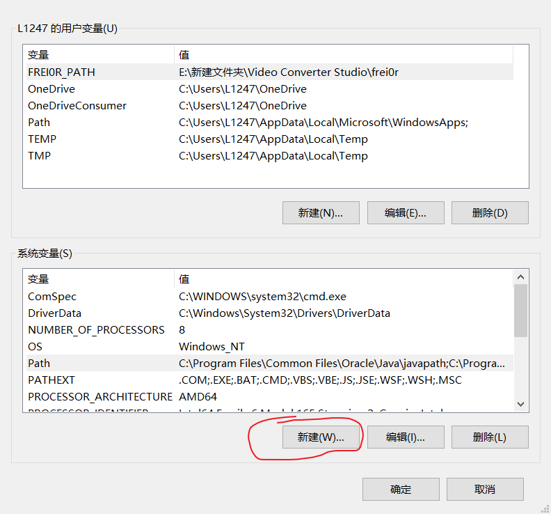 - 在弹出的窗口中点击“新建”,再点击“浏览”,选择到安装jdk文件夹下的“bin”文件夹,全部窗口点击“确定”,推出