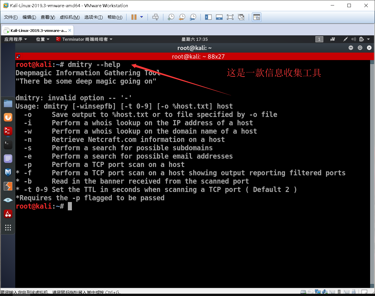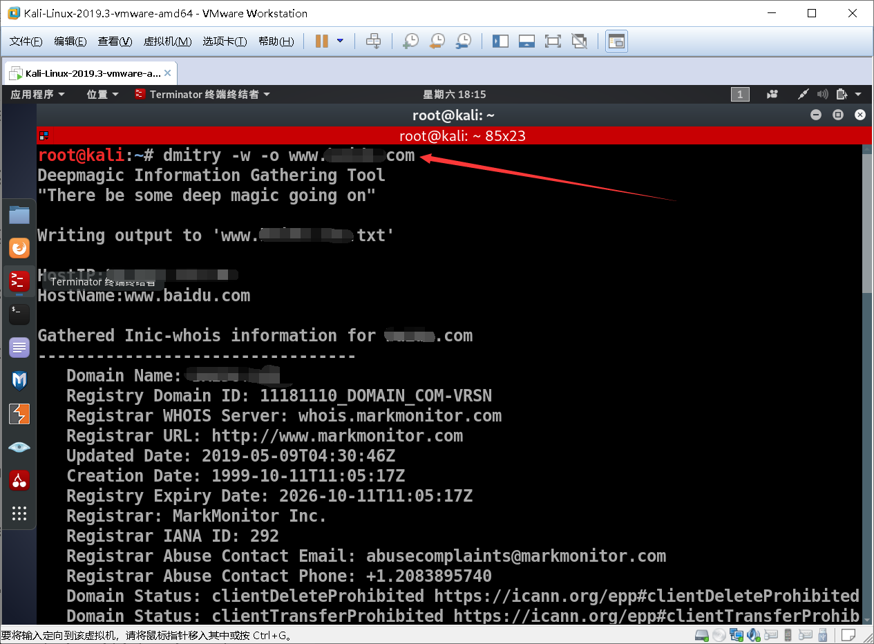 首先这款工具是信息收集工具里的第一位,大体作用是对IP或者web域名进行whois查询,它的用参数如下图: