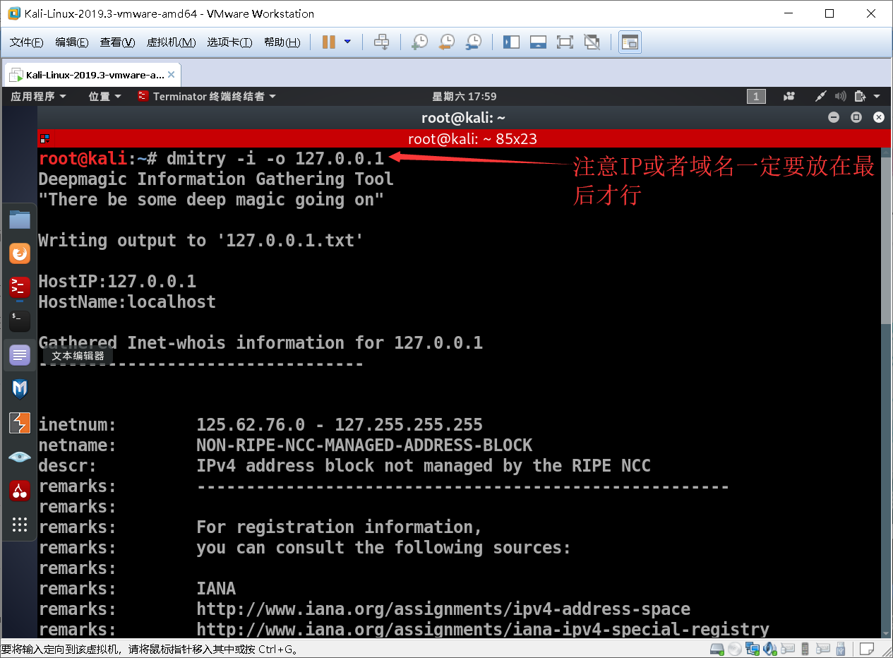 2. -i 参数 这里的是通过IP查询whois信息的意思,回显的信息躲在remake里面(备注) ,如下图所示