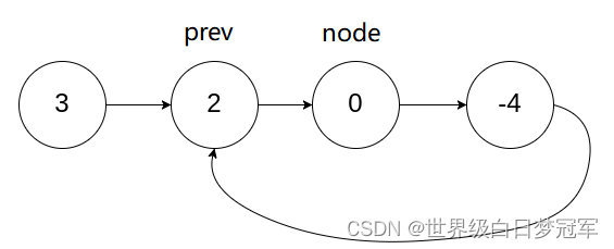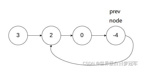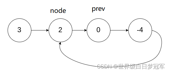 移动过后会发现,node和prev真的会重合,所以这个时候这个链表就是有环的。在代码中这个快慢指针的追逐直到prev==null || prev.next==null时才会停止,这个时候链表是没有环的,prev首先到达了尾部。