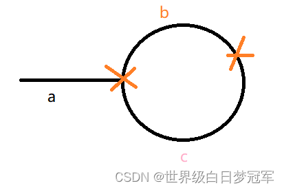 第一个叉号是意味着环的入口,第二个叉号意味着用快慢指针相遇的结点,b就相当于慢指针在环内走的长度,c相当于环剩下的长度,a就是进环之前的长度。那么low走的长度是a+b。fast走了多少个环不确定就设置走了n个环,所以fast走的长度是a+b+n(b+c)。