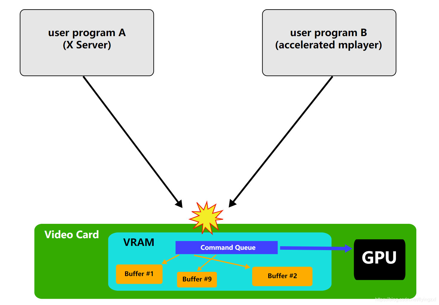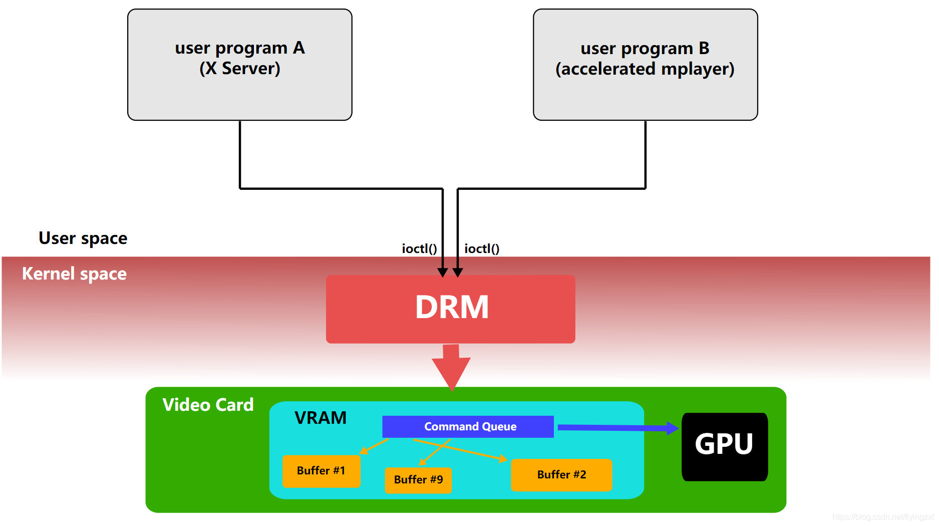 Direct Rendering Manager出现的目的,是为了允许多个程序协同地使用视频硬件资源。DRM以独占的方式访问GPU,并负责初始化和维护命令队列、内存和其他硬件资源。希望使用GPU的程序都得向DRM发送请求,DRM充当仲裁并避免可能的并发冲突问题。