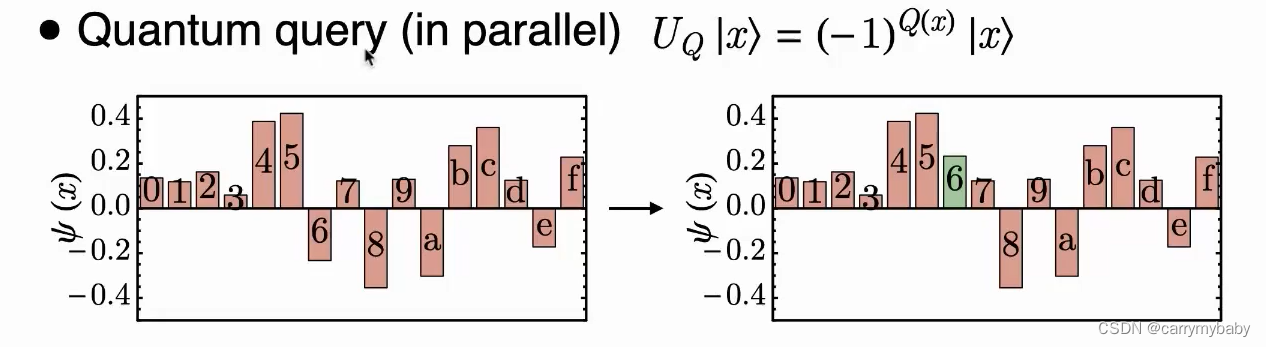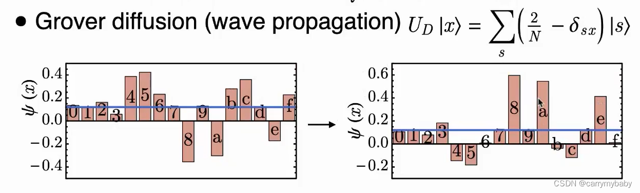 这个操作可以理解为波的传播,图中的蓝色线条可以理解为概率的平均值,这个操作就是对每个数据的波函数,转过Π,就是波谷变波峰,波峰变波谷。