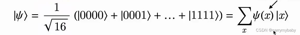 比如说,四个传统比特,可以表示为16个状态,如下图所示,但是cpu每次只能处于这16个状态中的其中一个,用一个量子比特就可以表示为所有可能值的线性组合。这就支持我们做许多事情,比如说一个搜索算法,在很大的数据集中搜索我们想要的数据。