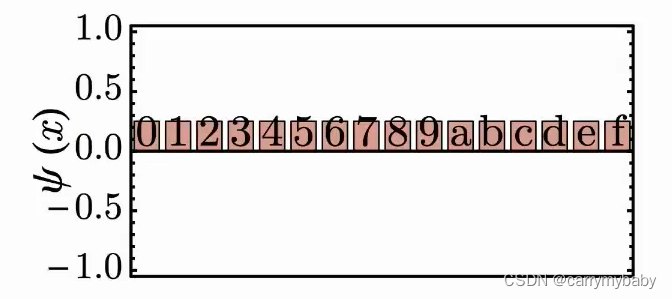 比如说,四个量子比特储存了十六个状态,量子算法首先将这十六个状态叠加在一起,刚开始时,这十六个状态具有相同的可能性: