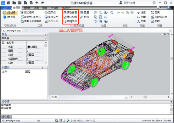 步骤三、打开CAD文件后就可以进行查看啦,点击图中红框内选项可以设置背景,其他功能可按需选择哦;