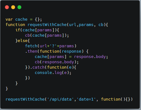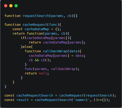 上面代码通过通用的cacheRequest函数来代理真正的请求。cacheRequest函数利用闭包,将传入的请求函数与cacheDataMap锁定在一个作用域中,并返回一个增强后的请求函数。这样,其他需求如果也有类似的缓存需求,那就可以直接用cacheRequest函数去生成一个即可。