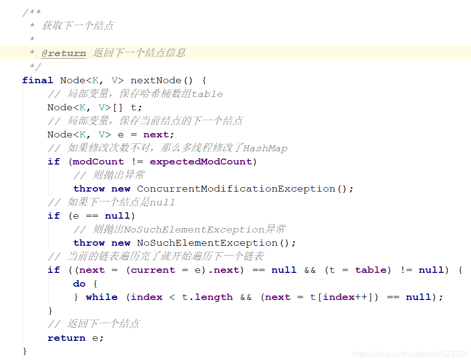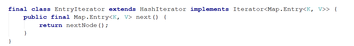 该方法被调用返回的类型就是Map.Entry<K, V>,而得到的结果是nextNode()方法的返回值。