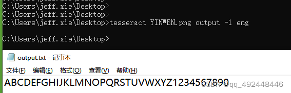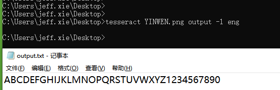 使用命令行转换:tesseract YINWEN.png output -l eng