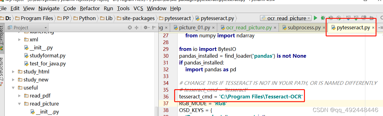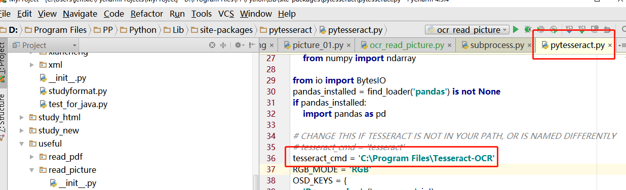 修改为:tesseract_cmd = 'C:\\Program Files\\Tesseract-OCR\\tesseract.exe'