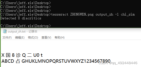 至此前期的环境准备工作已经完成,读者可以通过CMD命令行的模式使用OCR的基本功能了,接下来是通过Python语言集成进来,毕竟手工操作的效率和扩展性不如程序化实现。