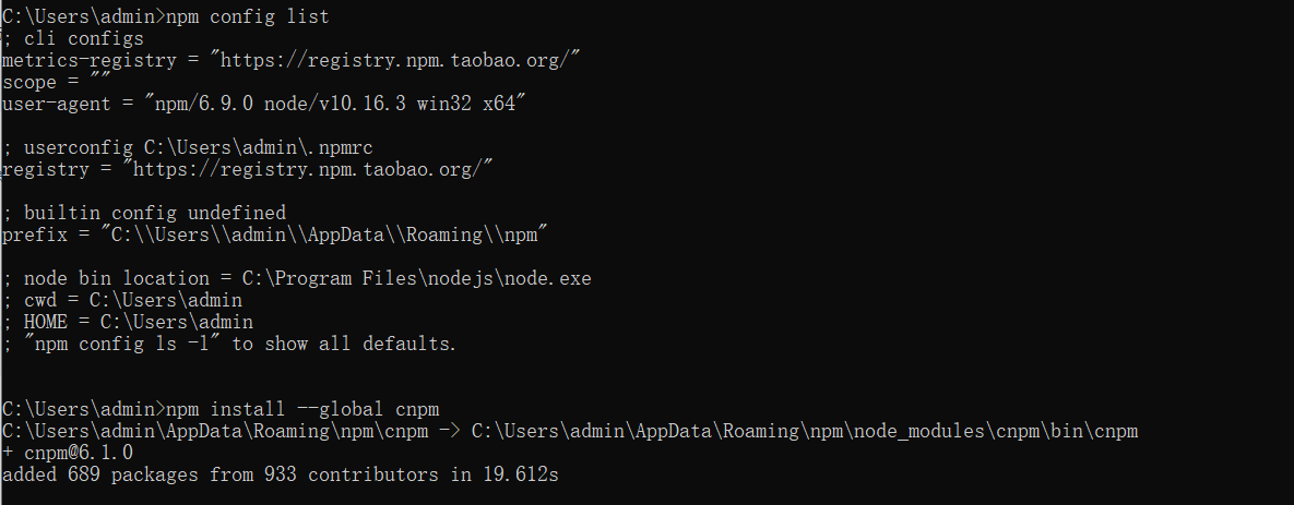 · 如果显示‘npm’不是内部命令提示,则可以管理员省份运行cmd,如果还是失败,则需要检查一下环境变量是否配置。