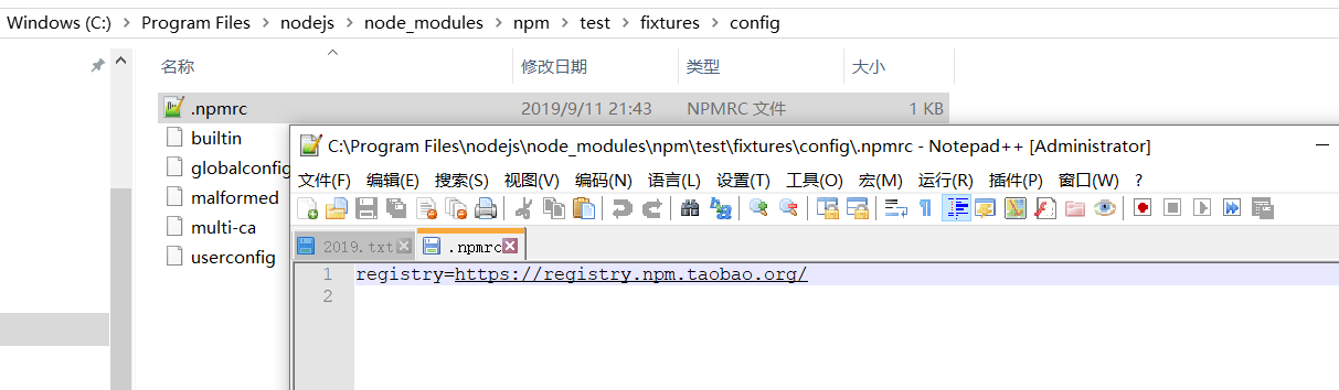 在nodejs的config目录下用管理员编辑.npmrc文件,写入配置taobao的镜像下载地址"registry=https://registry.npm.taobao.org/