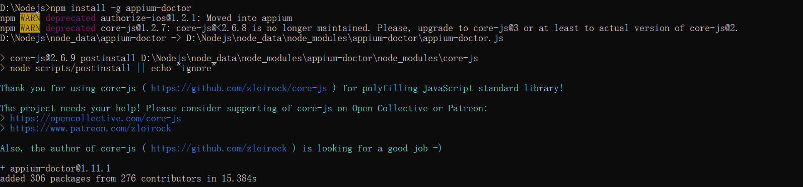 C:\Users\Shuqing>cnpm install appium-doctor -g