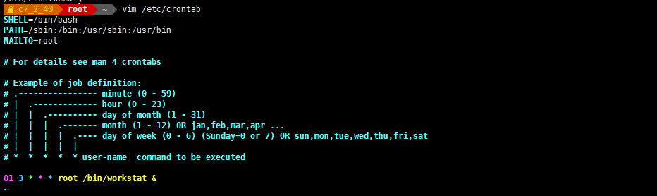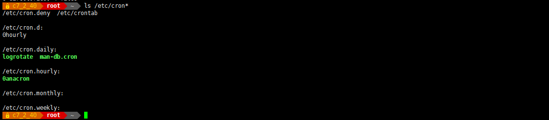 - 注:所有用户的计划任务,都会在/var/spool/cron/下产生对应的文件。只要看一下这个目录下的文件,就知道哪些用户生成了计划任务
