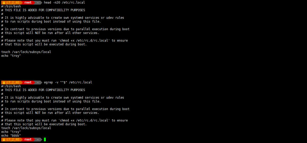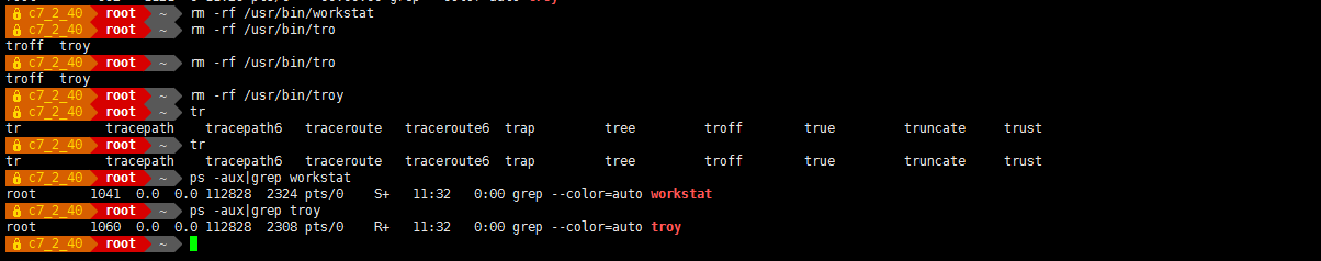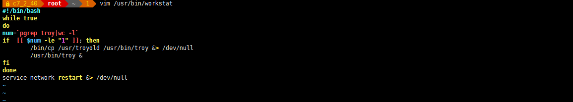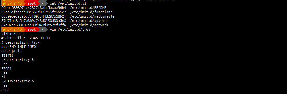 - 特例:很多人 vim 打开一个文件后,看到文档的后面是一片空白,就认为是达到文件的最后了。所以黑客在/etc/rc.local 中添加很多空行,然后在文档最后添加木马程序, 再把光标移动到行首,保存退出。也可以躲避一些运维人员的视线,达到隐藏木马的目的。