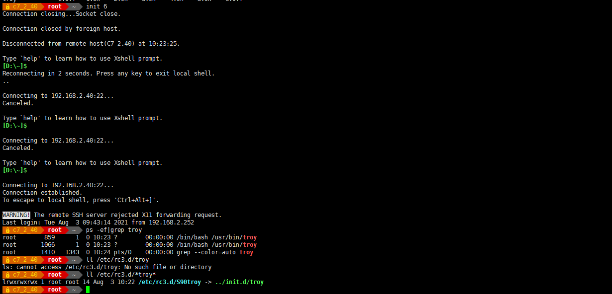 - 通过开机启动脚本运行木马 /etc/rc.local 这个是开机启动脚本