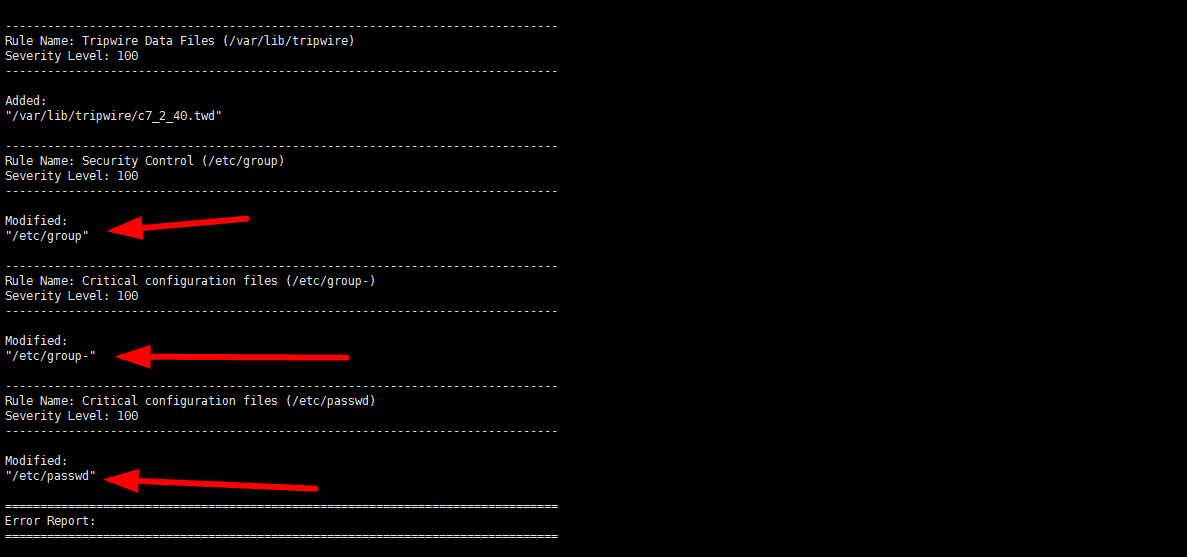 - tripwire --update --twrfile /var/lib/tripwire/report/c7_2_40-20210804-102714.twr