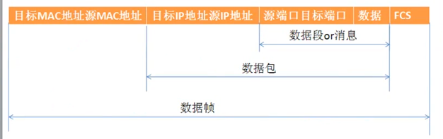 数据帧=目标MAC地址、源码MAC地址+目标IP地址、源码IP地址+源端口、目标端口+数据+FSC差错校验