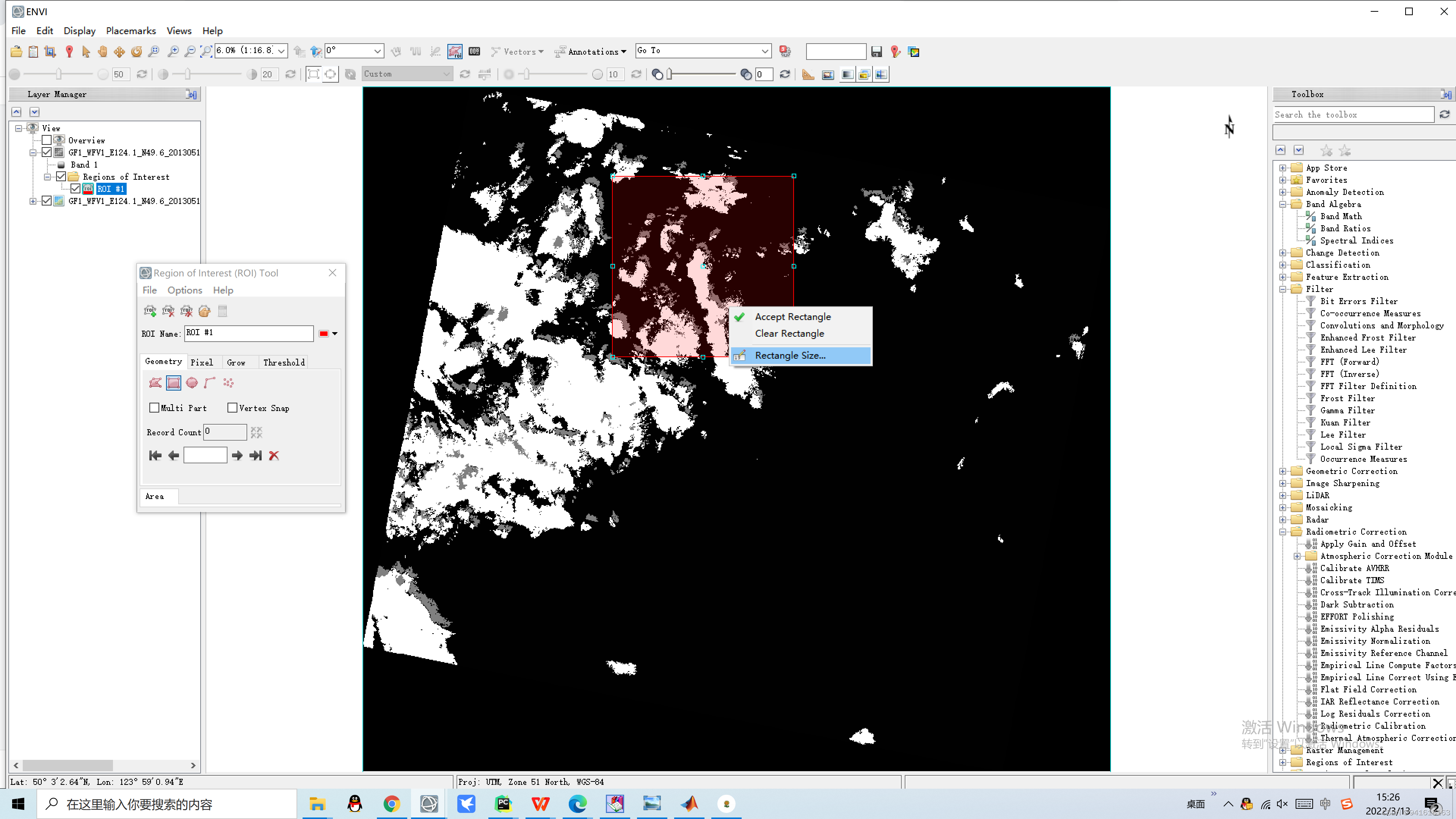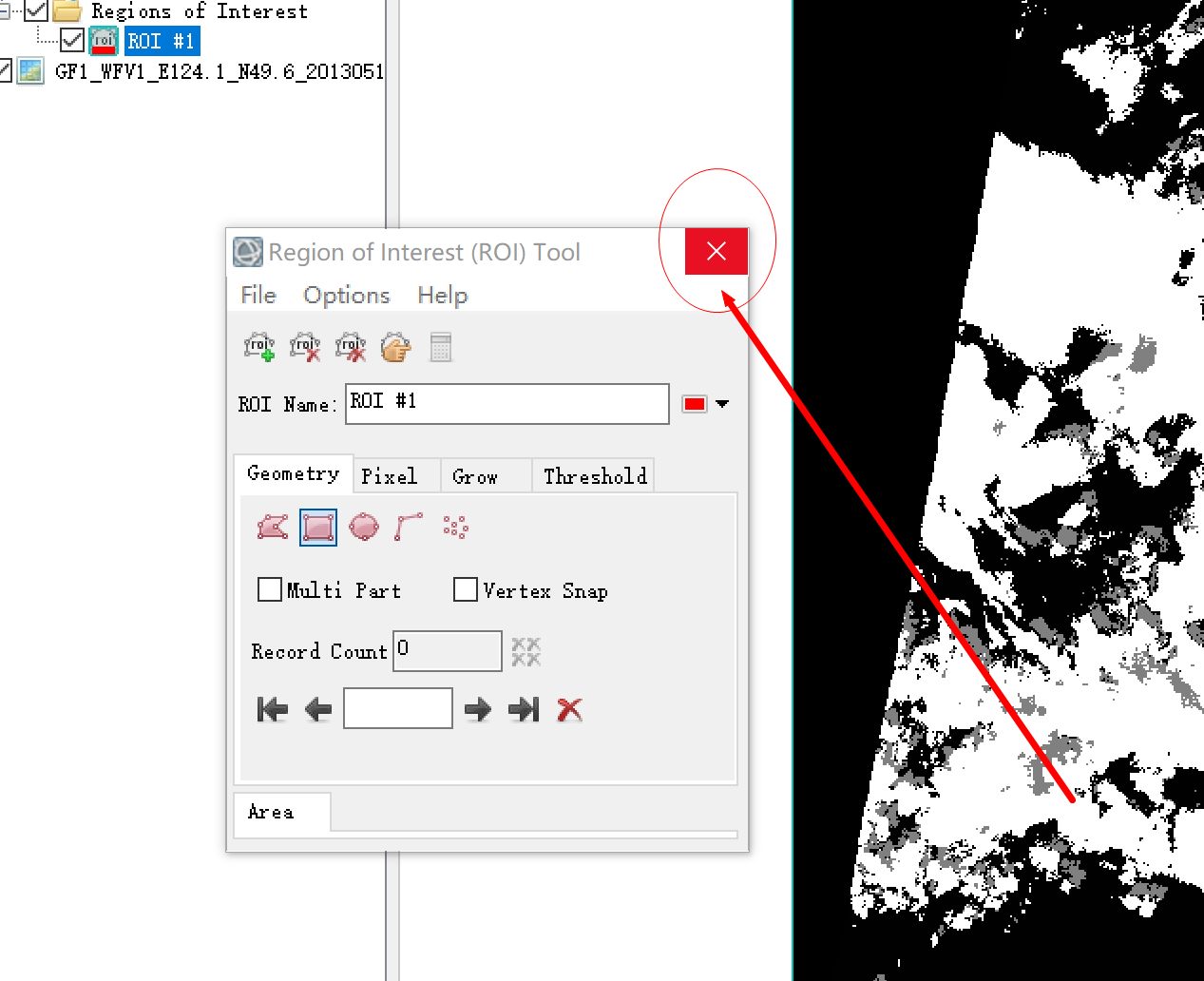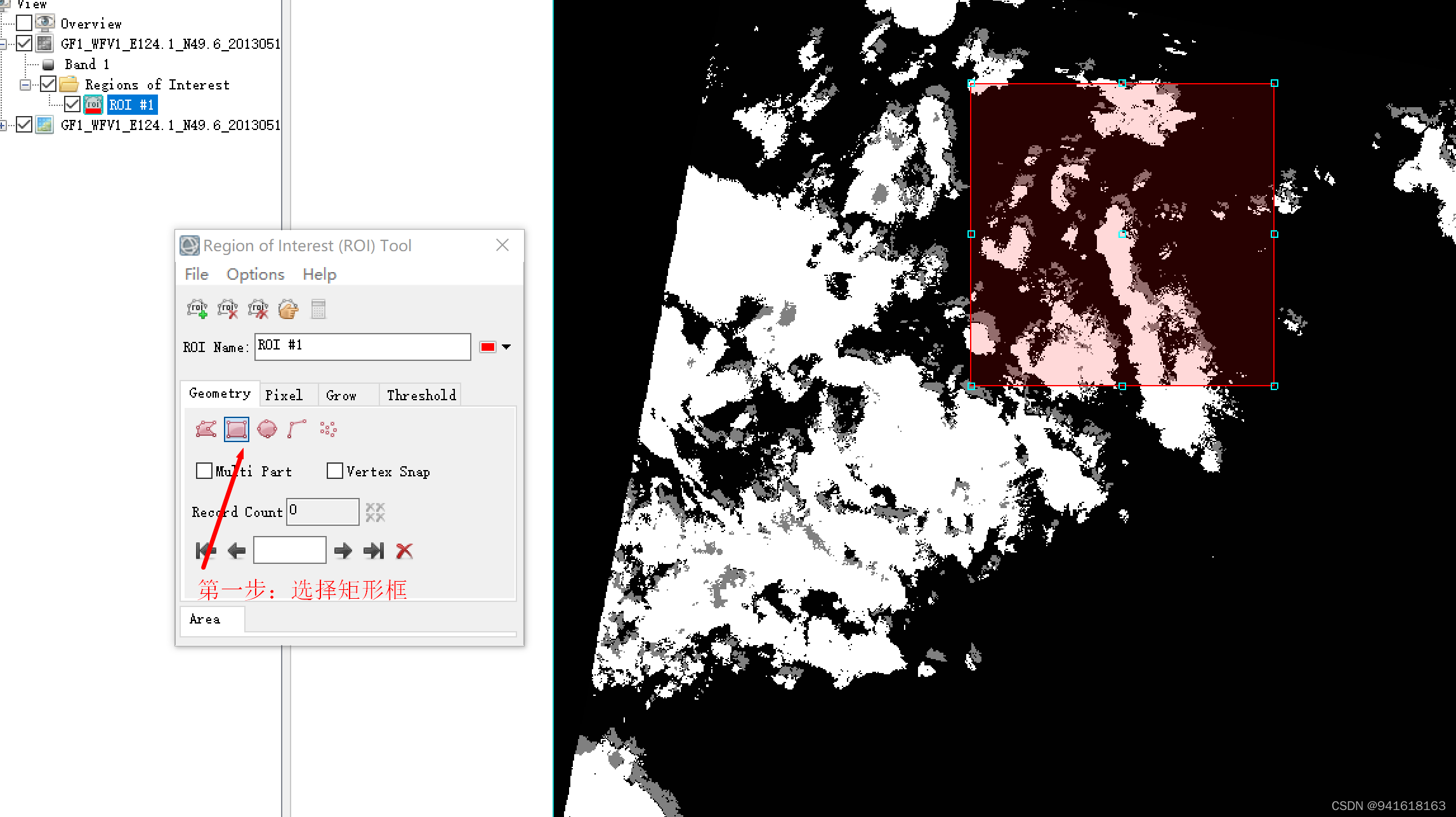 2:选中单波段图(灰度图或二值图或掩膜图),右键选中New Regin,进入roi界面