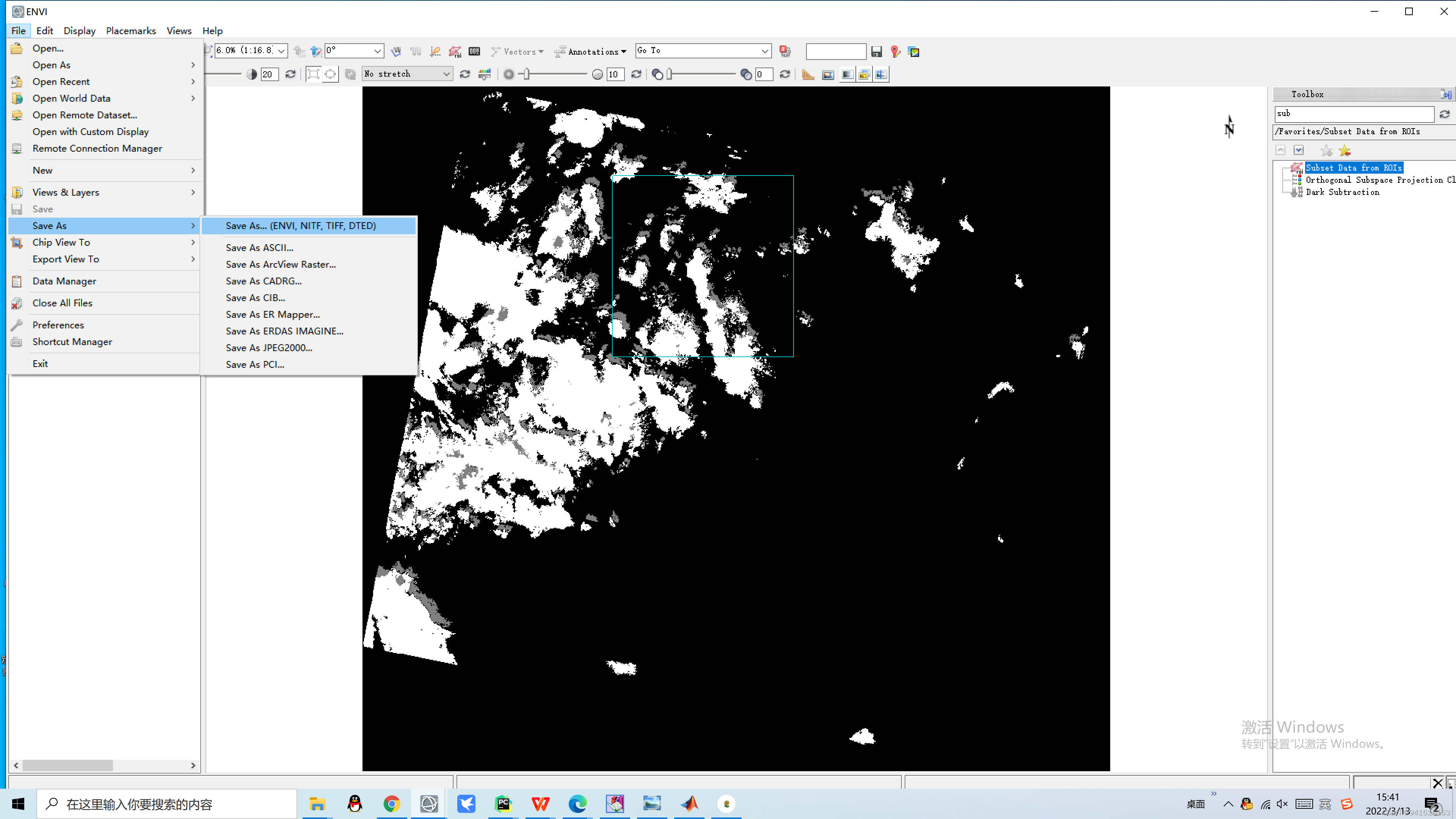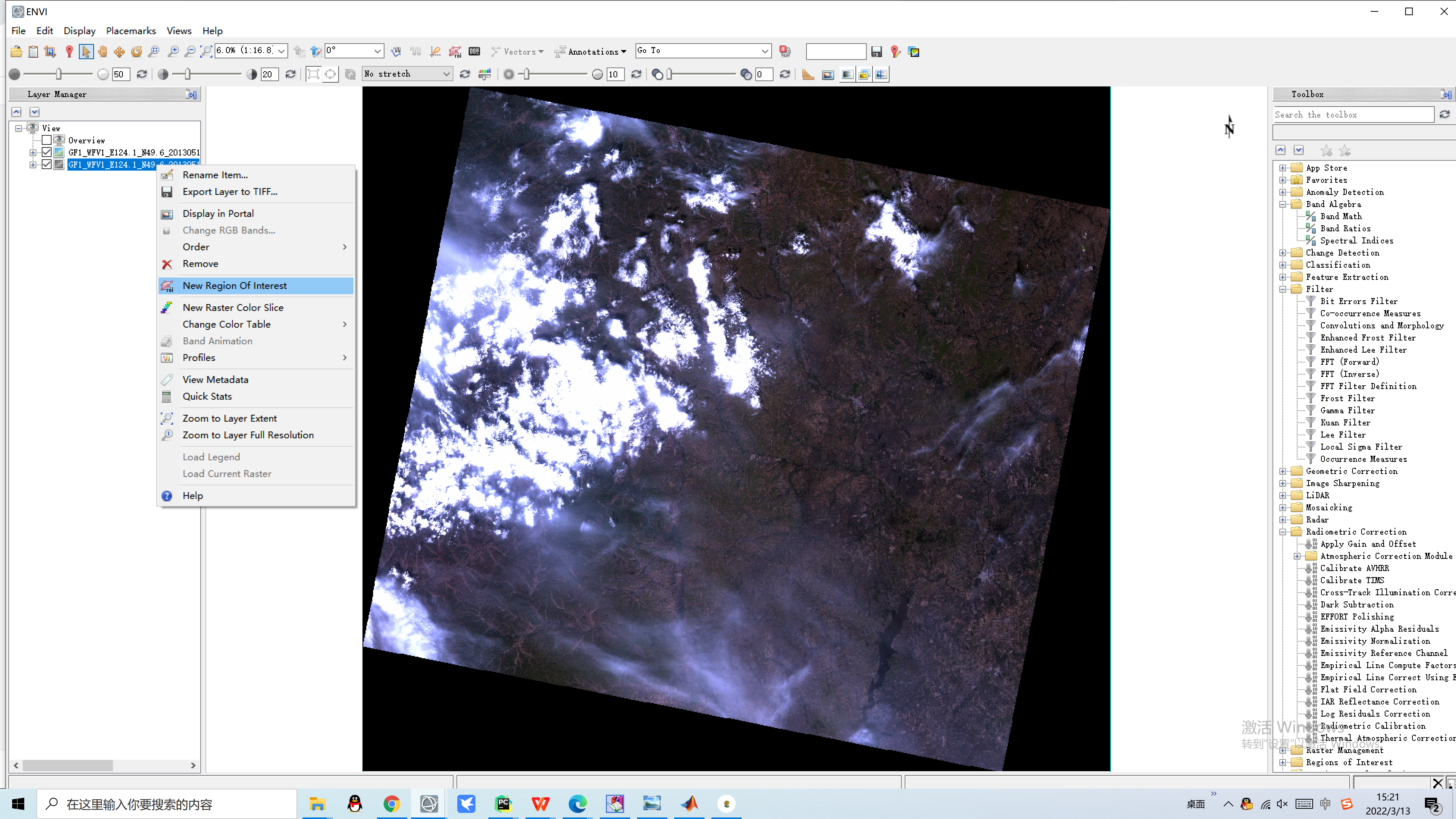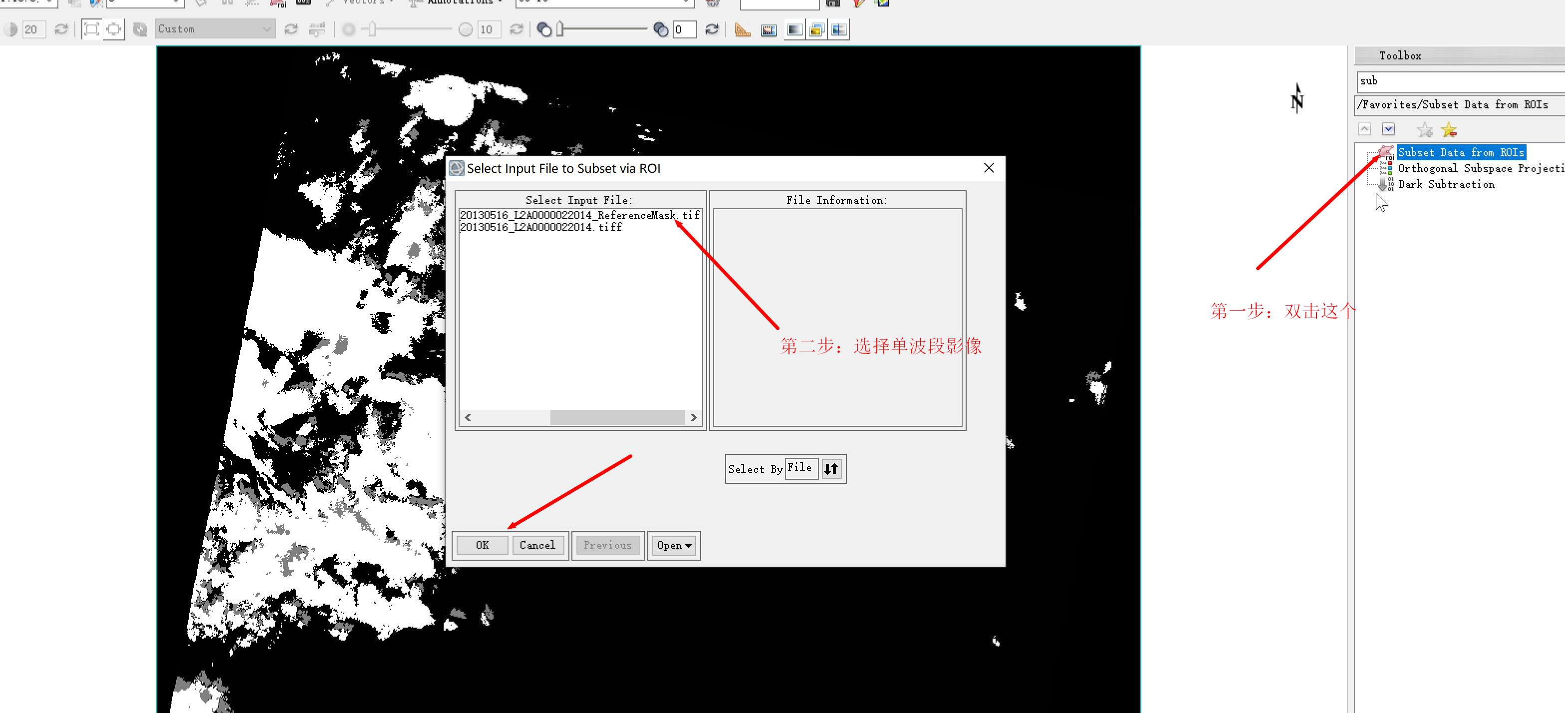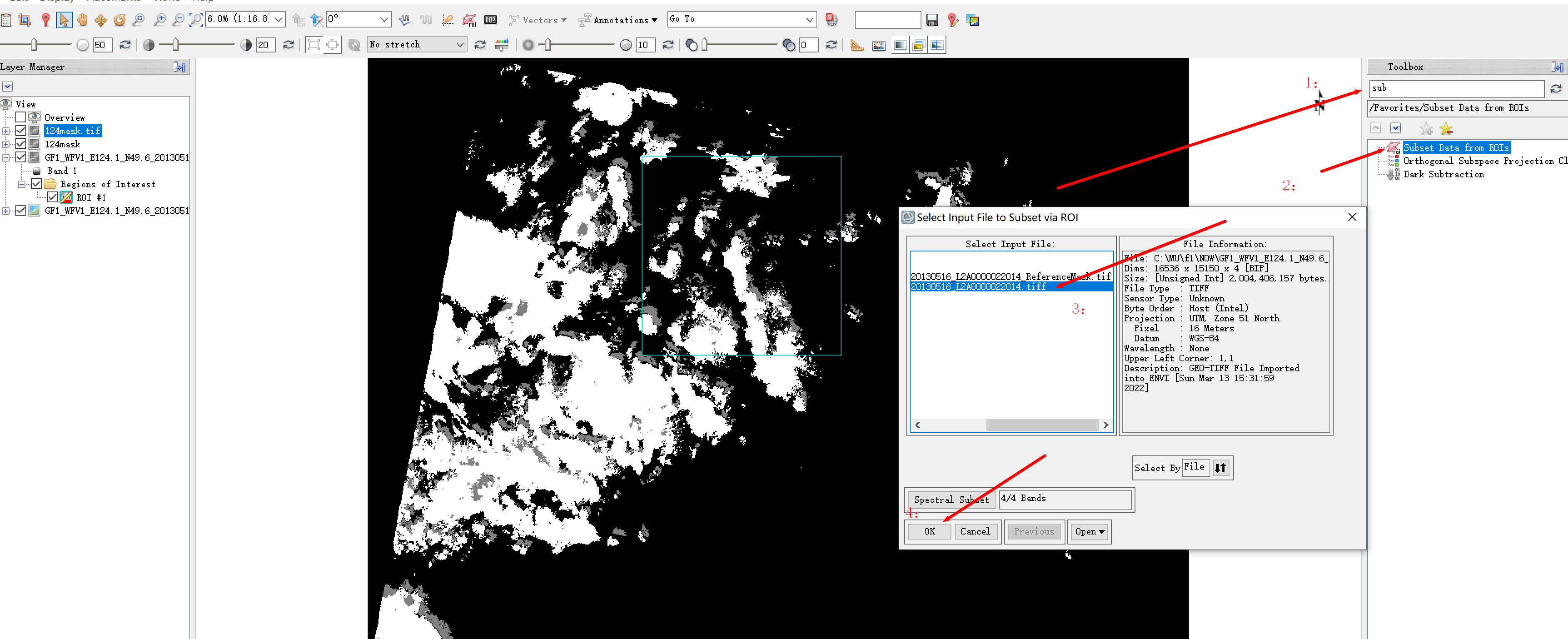 2:选中单波段图(灰度图或二值图或掩膜图),右键选中New Regin,进入roi界面