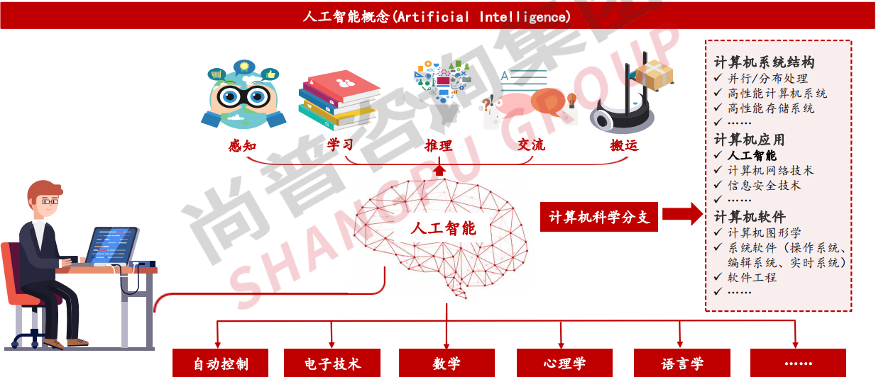 👉人工智能初期属于计算机科学的分支,研究领域涉及计算机视觉、自然语言处理、机器学习、语音处理等,同时又与多个学科紧密相关,包括自动控制、电子技术、数学、心理学、语言学、哲学等