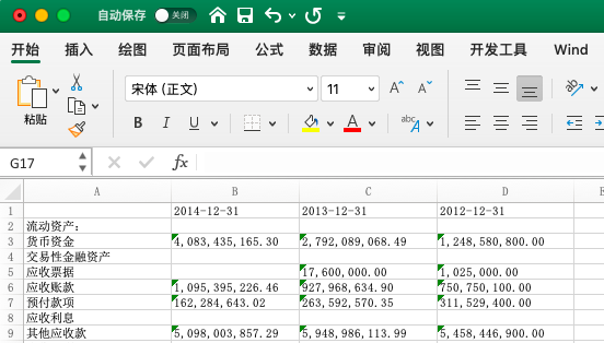 本案例PDF论文中第69-75页为附录部分,贴的是财务报表数据,截取部分内容,长这样: