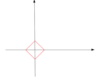范数表示元素的绝对值之和,若绝对值之和为常数,则相加之和为一常数),不过在这些边上只有很少的点是稀疏的,即与坐标轴相交的4个顶点。 这样这些同心正方形们可以和解相交,最终找到我们满足稀疏性要求的解,同时这个交点使得