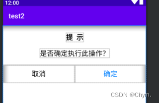 import android.widget.Button;import androidx.appcompat.app.AppCompatActivity;import com.example.test2.widget.CustomDialog;public class CustomDialogActivity extends AppCompatActivity {private Button mBt;@Overrideprotected void onCreate(Bundle savedInstanceState) {super.onCreate(savedInstanceState);setContentView(R.layout.activity_custom_dialog);mBt = findViewById(R.id.bt_dialog);mBt.setOnClickListener(new View.OnClickListener() {@Overridepublic void onClick(View view) {CustomDialog customDialog = new CustomDialog(CustomDialogActivity.this);customDialog.setsTitle("warning").setsMessage("are you sure?").setsCancel("cancel", new View.OnClickListener() {@Overridepublic void onClick(View view) {customDialog.dismiss();}}).setsConfirm("sure", new View.OnClickListener() {@Overridepublic void onClick(View view) {}}).show();}});}