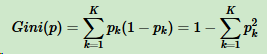 假设K个类别,第k个类别的概率为pk,概率分布的基尼系数表达式: