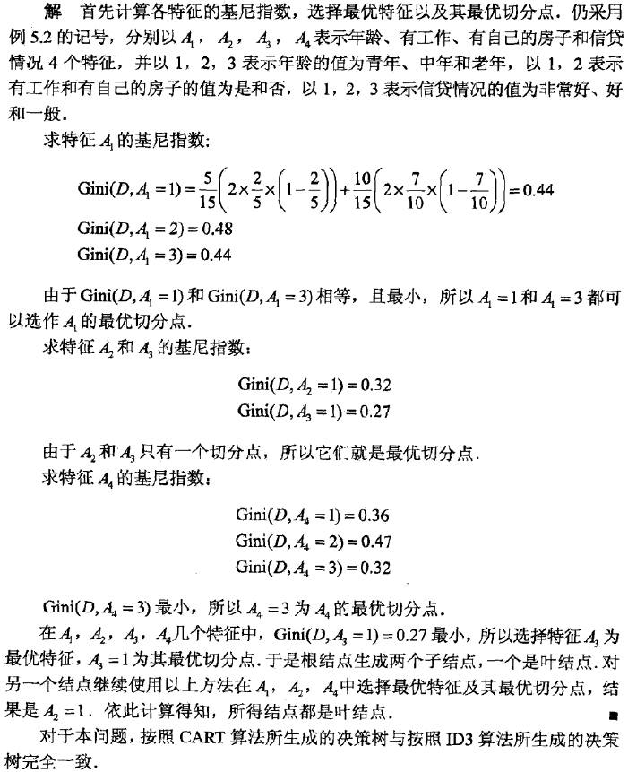 例:根据下表所给的训练集,应用CART算法生成决策树。