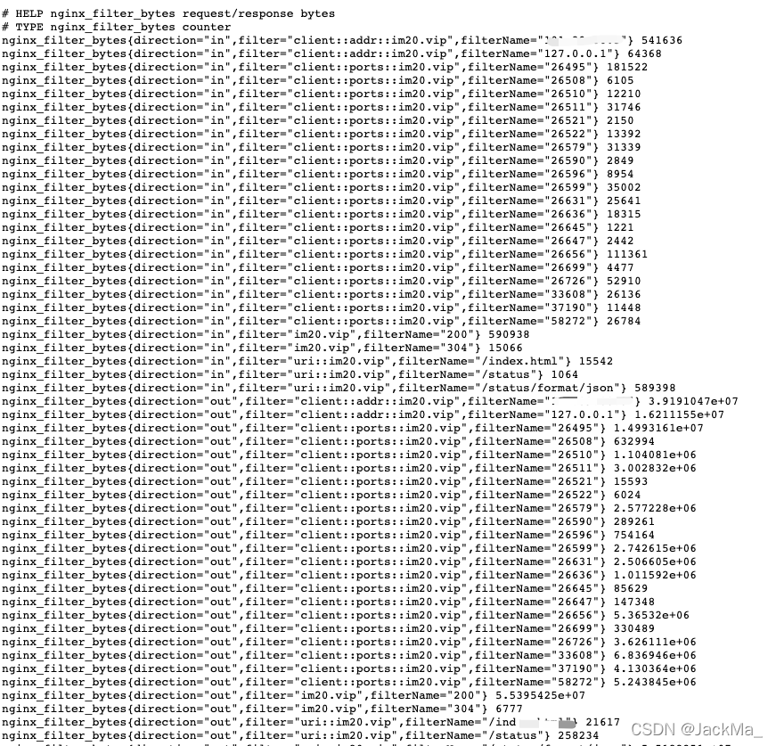 exporter会收集nginx性能指标的JSON格式数据,并汇总后暴露监控接口给Prometheus。