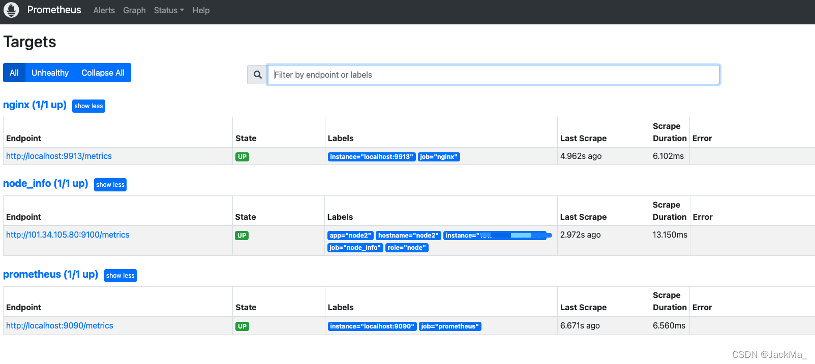 # 我们登录到Prometheus主机,看下这个节点是不是up状态