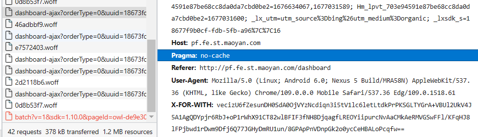 观察请求体我们可以发现这里有一个x-for-with参数,这个参数其实是访问了meituan的一个接口之后生成的,实际上这里的woff文件也是meituan的。
