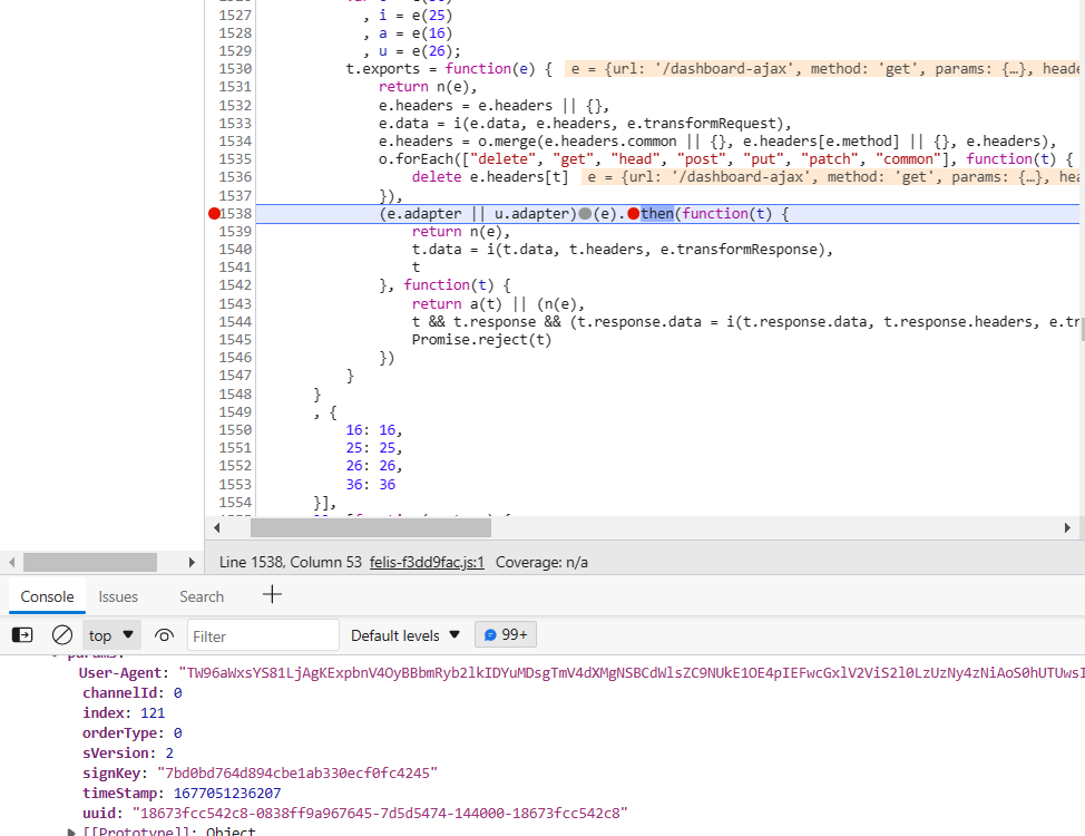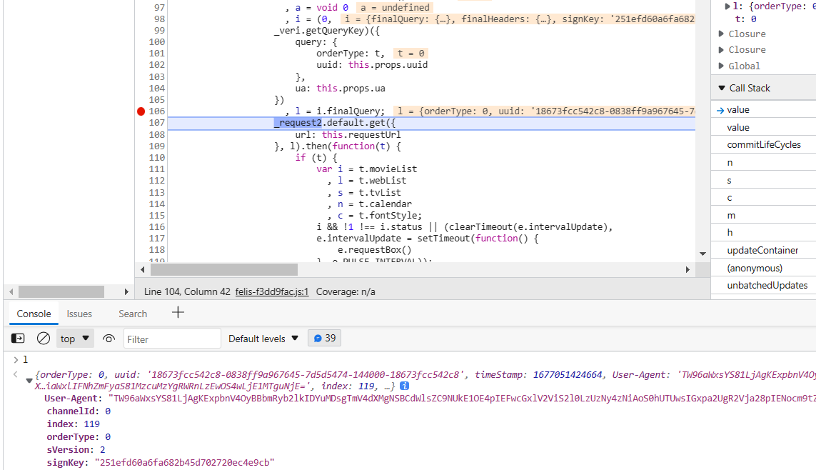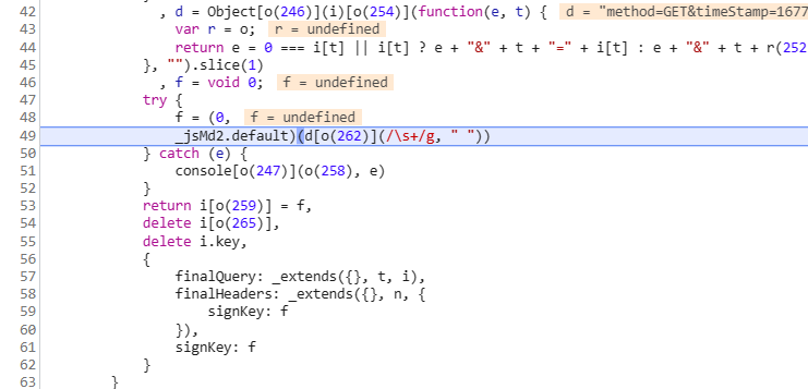 跟进之后就发现了所有请求参数的生成方式,其中signkey就是f的值。