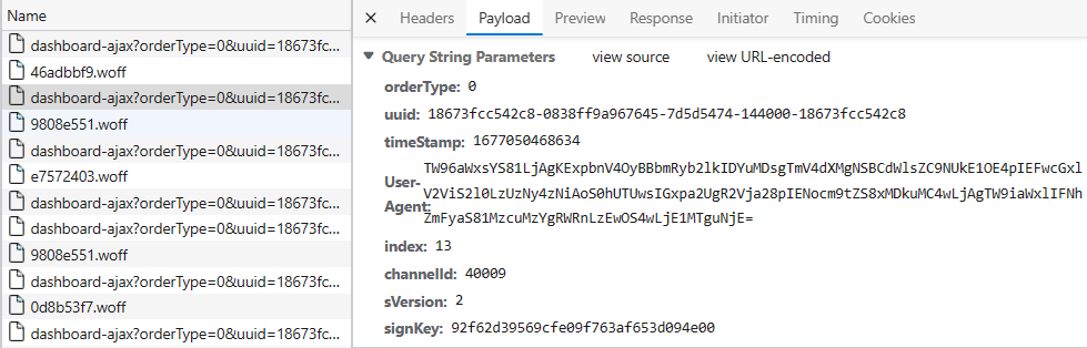 根据数据包可以发现,该网站在发送了ajax请求的同时又请求了一份woff文件,基本上可以确定这里使用了字体文件加密的方式了。