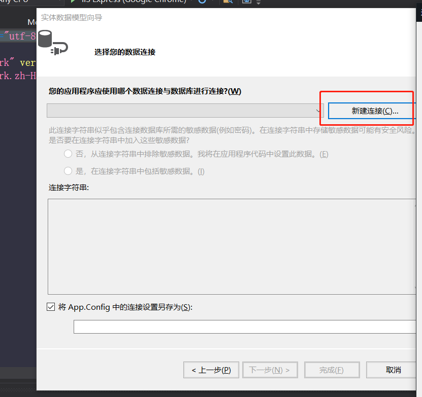 因为当前项目没有连接过,所以选择新建连接;如果已有连接的话,就选已有的;