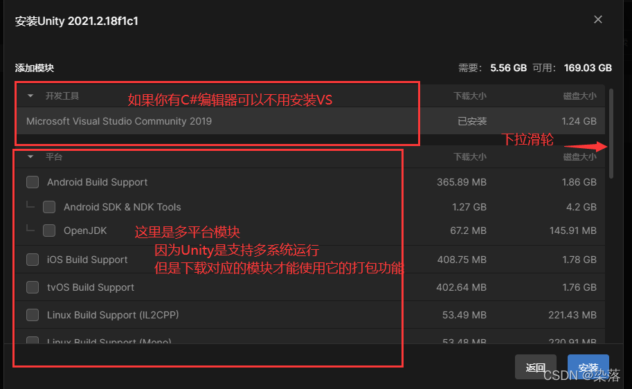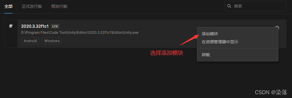 如果你根据提示框安装Unity编辑器,又感觉少了一些模块,后面有添加模块教程。