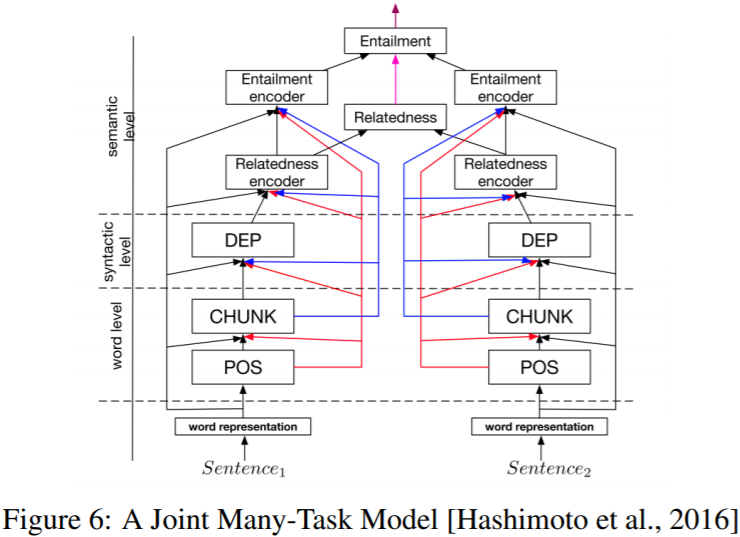 (5). A Joint Many-Task Model:如下图所示:由多个NLP任务组成分层结构,然后将其作为多任务学习的联合模型。