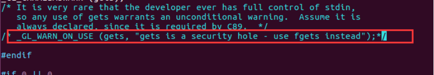 网上搜了一下,解决方法是到wget目录中,找到stdio.h文件,给它修改权限sudo chmod 777 stdio.h,执行命令“vim stdio.h”,用“1012G”跳到1012行,注意是wget目录(不是Ubuntu系统目录)下的stdio.h文件,然后注释掉stdio.h中的1012行,就是下面我注释掉并且圈出来的这行,保存退出后,再次运行make命令,正常编译。