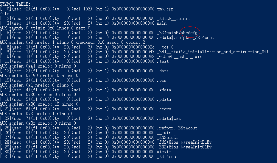objdump -t .\tmp.o 其中-t表示查看符号表