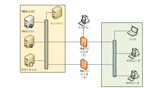 应具备双机热备功能,当主WEB应用防火墙出现故障时,备WEB应用防火墙应及时发现并接管主WEB应用防火墙进行工作。