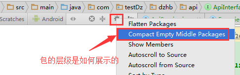 1.首先 ,修改包名 ,可以先根据自己的需要更改包名的层级排序,再修改包名,包名展示的排列方式,横还是纵,如图: