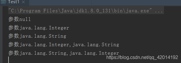 public class Test1 {public void out(){System.out.println("参数"+null);}//参数数目不同public void out(Integer n){System.out.println("参数"+n.getClass().getName());}//参数类型不同public void out(String string){System.out.println("参数"+string.getClass().getName());}public void out(Integer n ,String string){System.out.println("参数"+n.getClass().getName()+","+string.getClass().getName());}//参数顺序不同public void out(String string,Integer n){System.out.println("参数"+string.getClass().getName()+","+n.getClass().getName());}public static void main(String[] args) {Test1 test1 = new Test1();test1.out();test1.out(1);test1.out("string");test1.out(1,"string");test1.out("string",1);}
