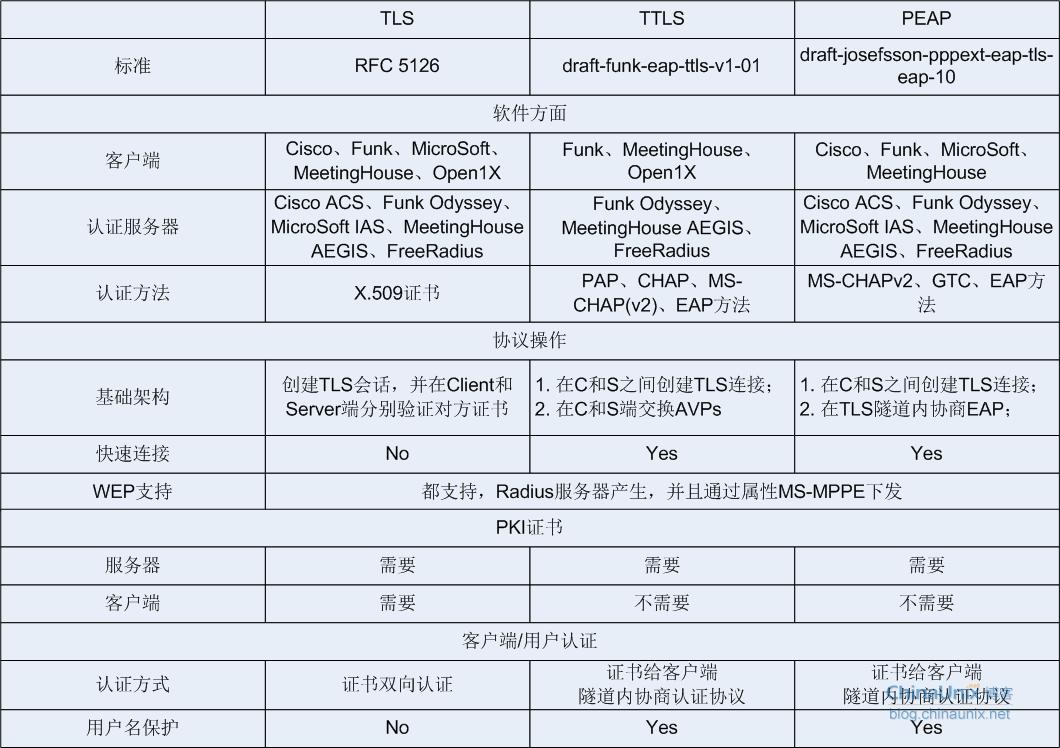 - 认证协议5——EAP-TLS/EAP-TTLS/EAP-PEAP http://blog.chinaunix.net/uid-26422163-id-3457357.html