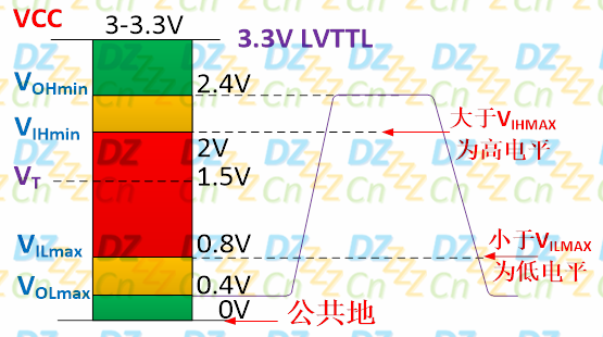 通常大多数低速数字逻辑电平(如TTL、CMOS)是以电压对参考地的幅值来判断是高电平还是低电平,如下图所示: