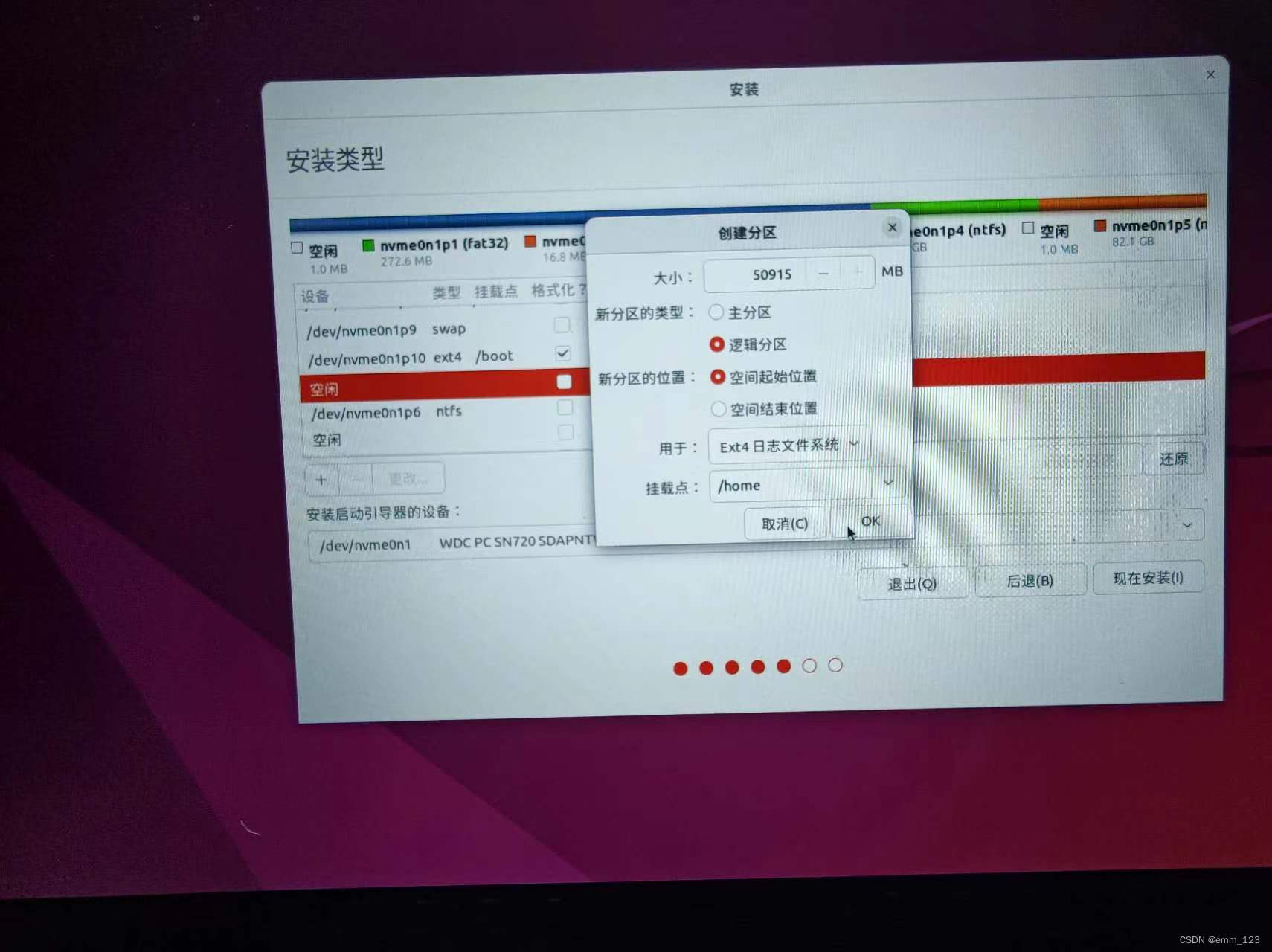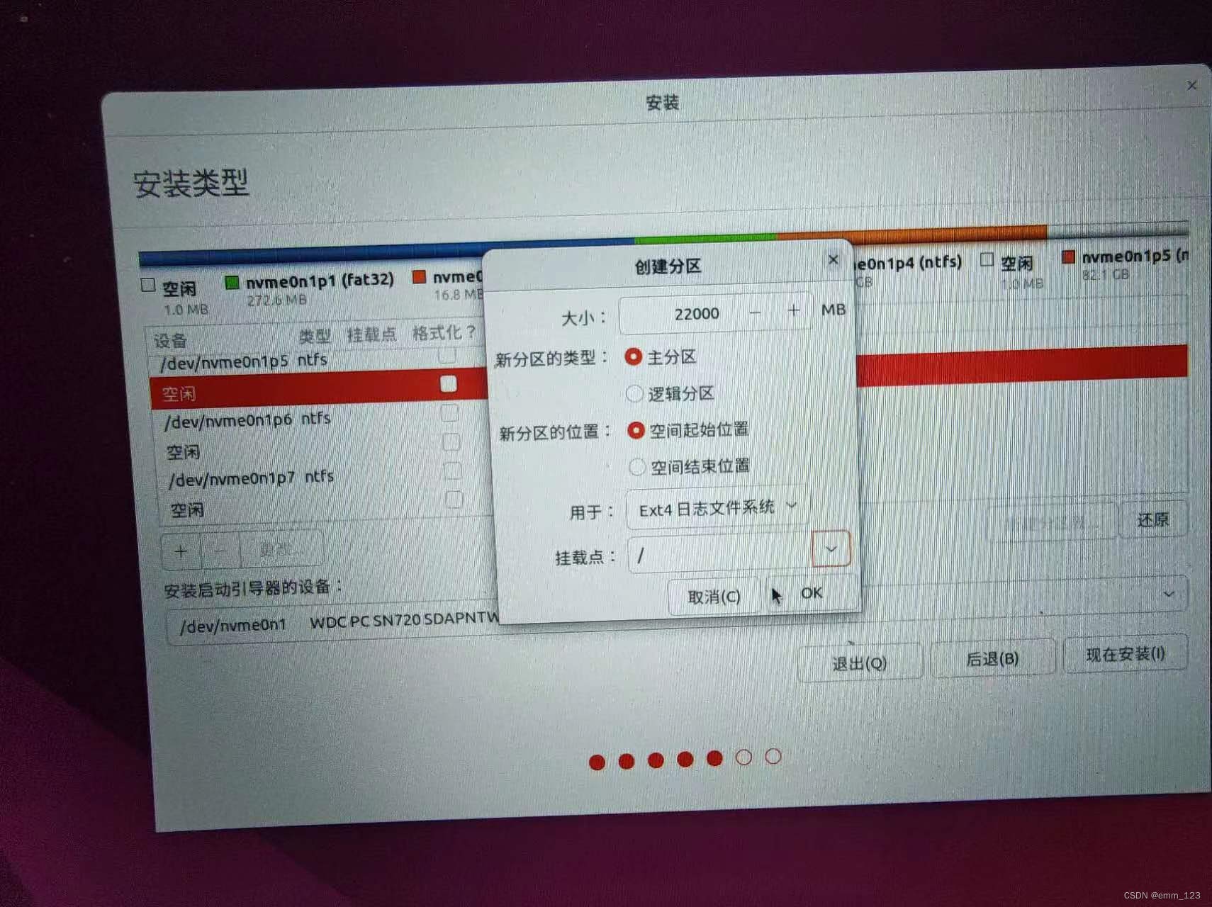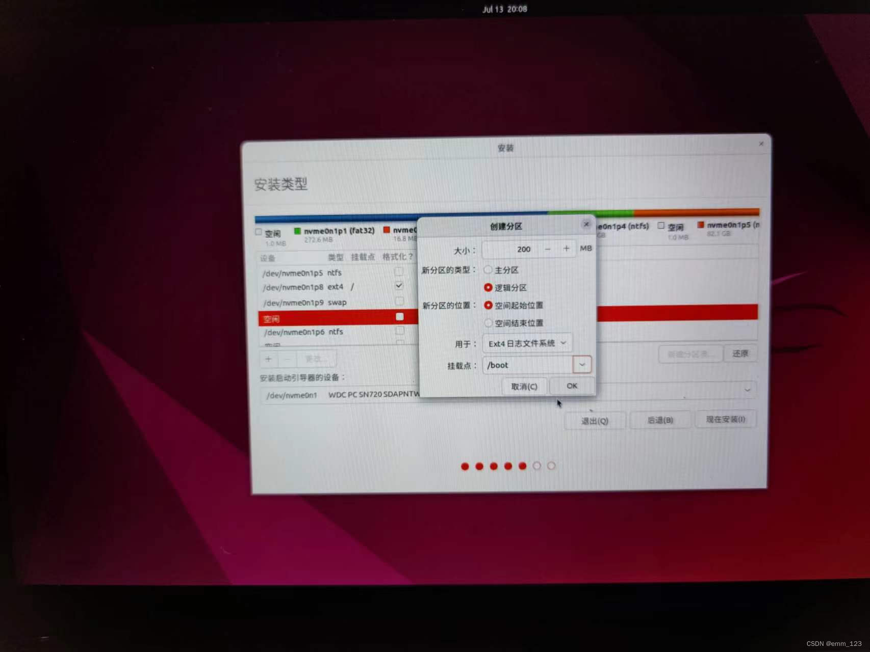 这里就是我要说的问题了,由于boot分的太小,后面安装的时候出现了“删除×××失败”的提示,