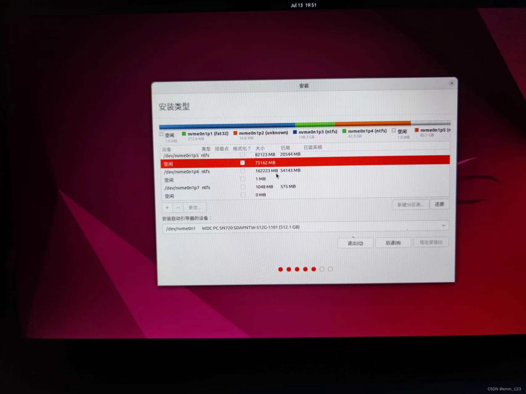 这里一定不要选错磁盘了,所以我在前面设置了一个与其他盘大小都不同的新分区,同时这个盘一定是空闲的 ,也可以用来区分