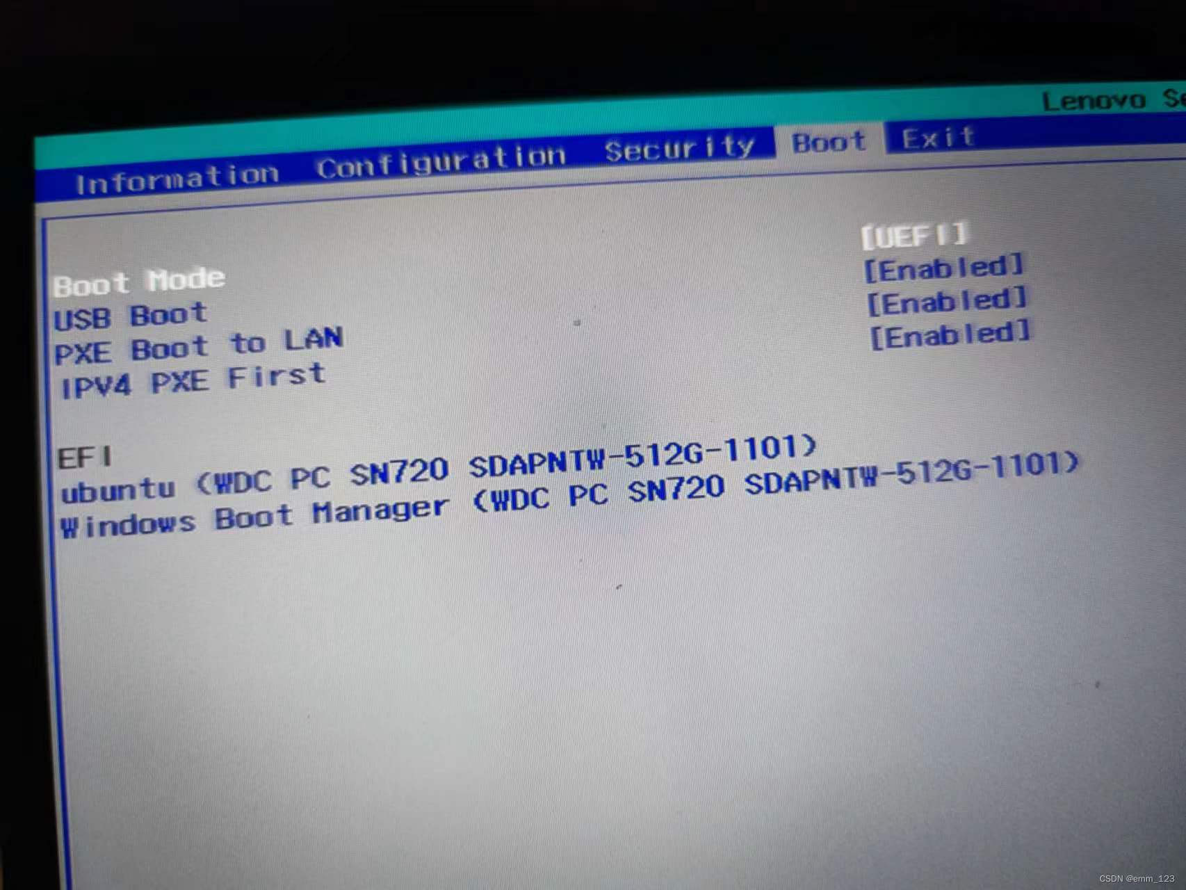 5.进入自己电脑的bios(我在这里卡了半天,看网上都是按f12,f1,f2啥的,我按了半天没反应,最后找到一篇博客,发现我这个型号的电脑(lenovo小新air13iwl)进入bios的方法是:关机,用根针捅一下recovery按钮,也就是那个小孔,一般旁边有一个环形的小箭头,真是坑死我了),并设置