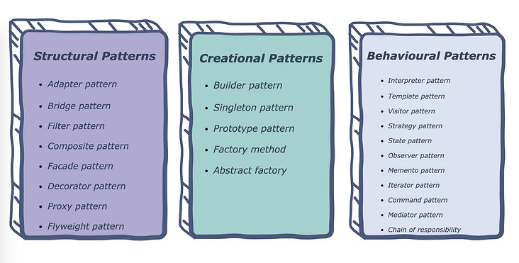 - 结构型模式(Structural Patterns): 通过识别系统中组件间的简单关系来简化系统的设计。